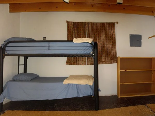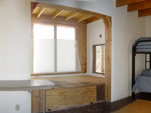 There is one bunk bed, and the window alcove can accommodate a mattress.