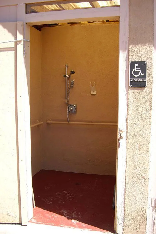 The Outdoor Showers are accessible from the Yurts and Main Building.